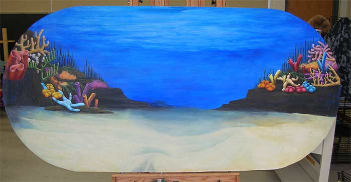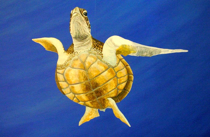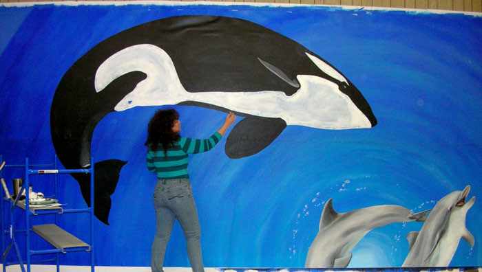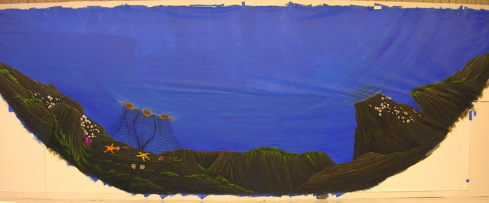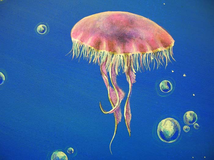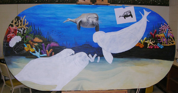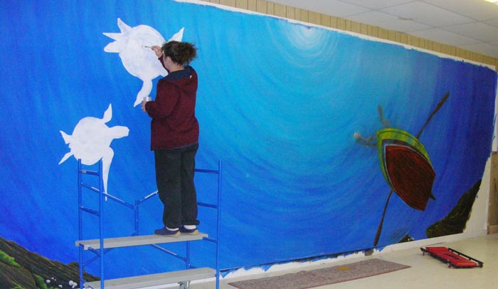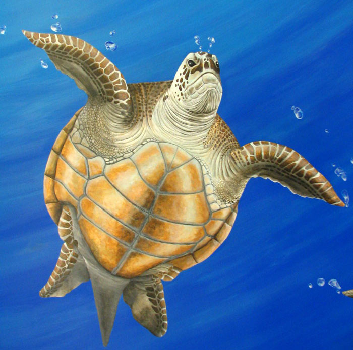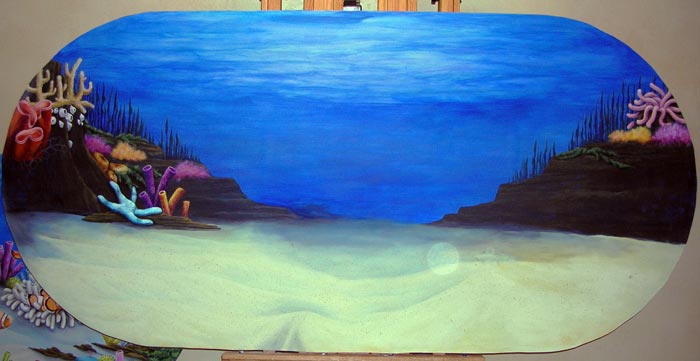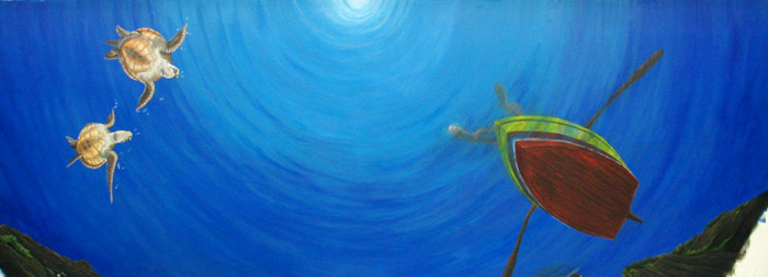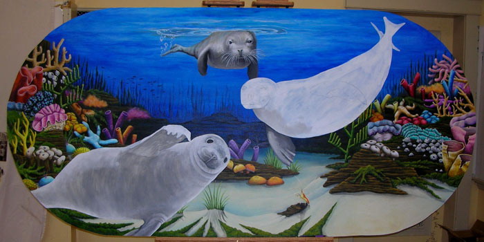 I find that my style of painting works very well with underwater scenes, as I combine vibrant colors with a fine level of detail. I had a lot of fun painting these murals which were installed in a new dentist’s office which catered to children. The office itself was full of bright colors, so my murals needed to stand out!