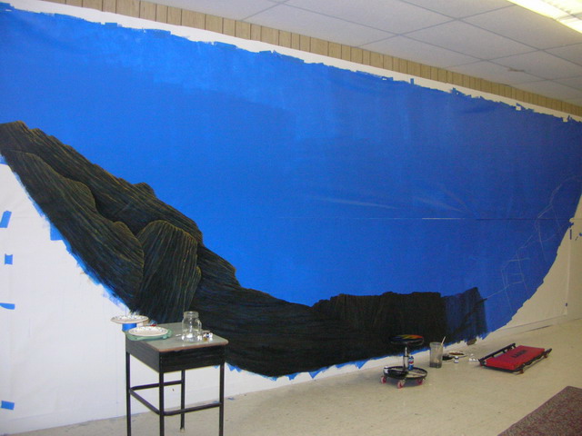 Here is an album which shows the progress on the 4′ x 8′ (1.2m x 2.4m). I also built the frames and installed it on site after painting everything in my studio.