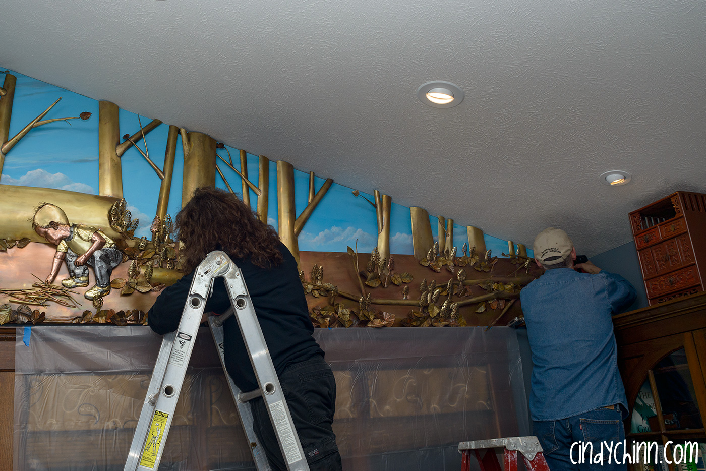 November 24, 2015: Assembly is more or less complete (there may be the odd leaf added) and all that’s left is a final clean and polish and sealing. I’ll be starting the mural soon that will be on the wall behind the sculpture.