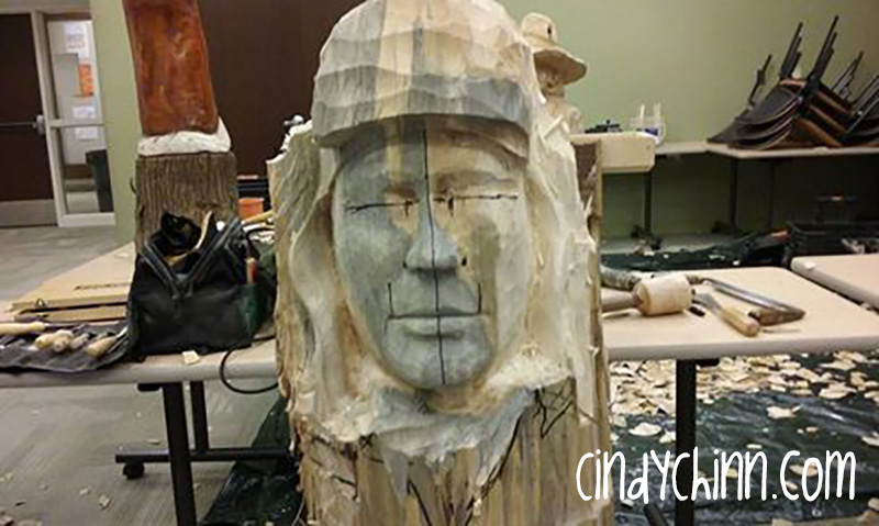 This project has been a long time in the making. It began when I registered for a woodcarving workshop and signed up for a ‘log carving’ class. I really wanted to learn some tips about carving in 3D and wondered what might make the best subject for the class, other than the standard Santa or Indian. I ended up deciding to make a custom wood carving portrait of my grand uncle, Alton.