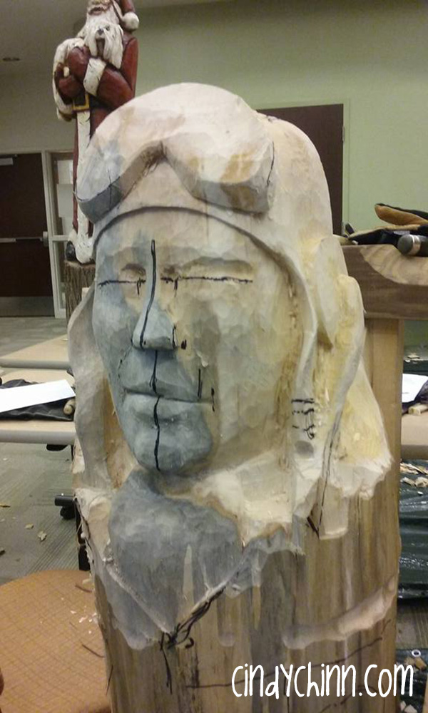 After two full days of carving, things were starting to come together! I had the face roughed in and the body was starting to come into shape.