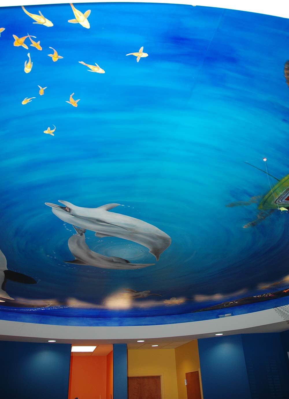 LIBRARY MURAL | MOVIE THEATRE MURAL | HOSPITAL CEILING MURAL | MURALS FOR DENTIST OFFICE | DIVE TANK MURAL