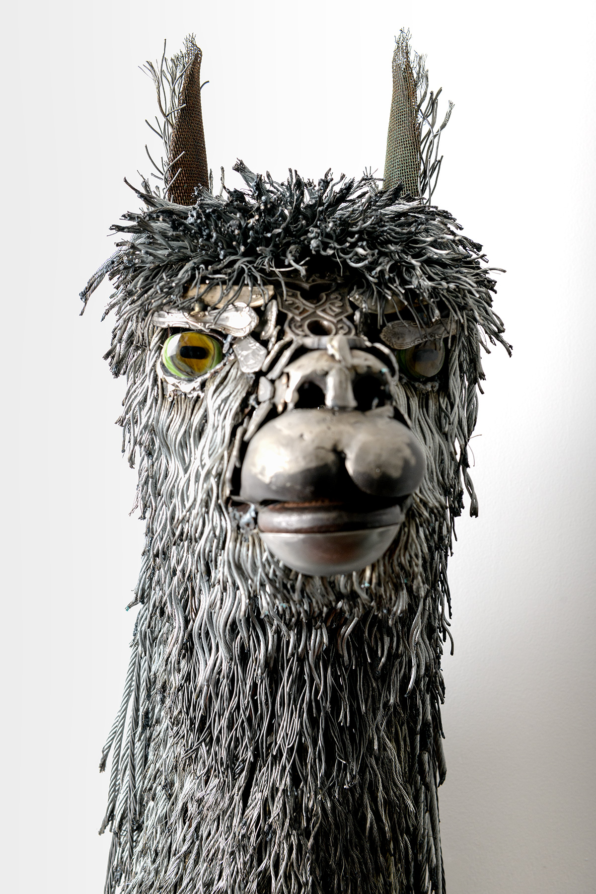 suri Alpaca Bust Sculpture scrap metal wire Cindy Chinn 14